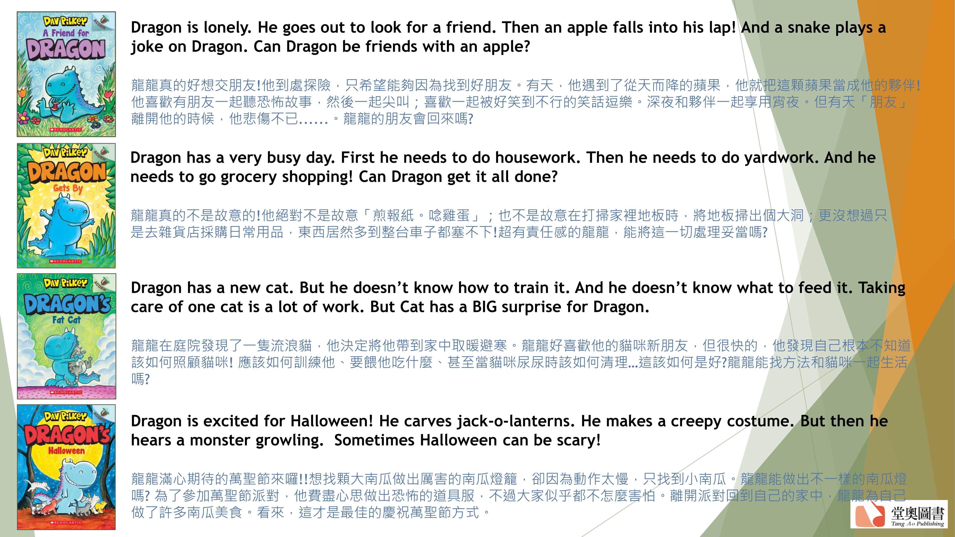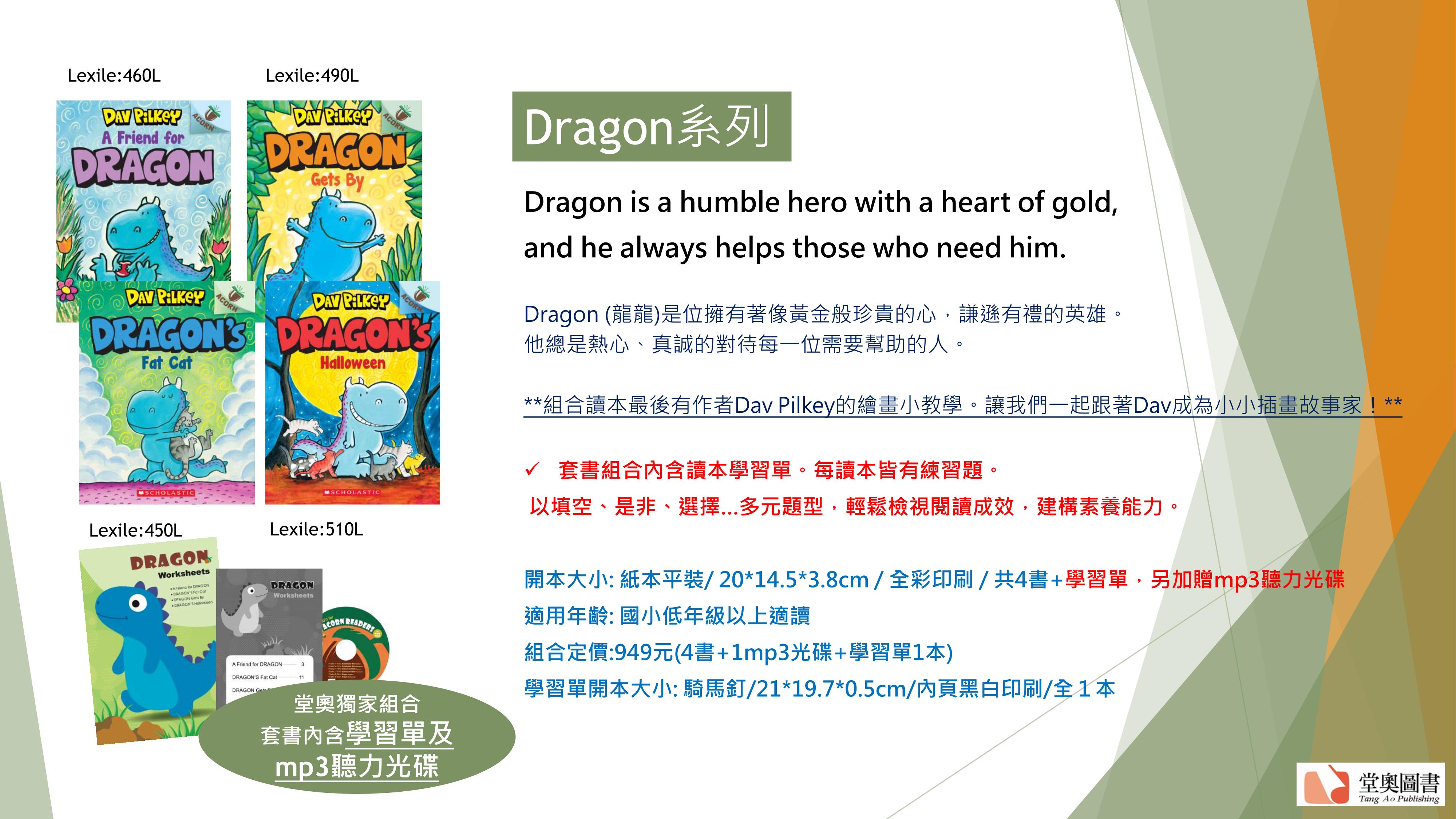 作者:Dav Pilkey (Author, Illustrator) 出版:Scholastic Asia 頁數:64/每冊 尺寸: 210mm x 295mm(學習單) 140mm x 179mm(讀本) 規格:彩色/平裝 級數:Lexile分級 450~510L 適用程度:幼兒園 (5~6歲)