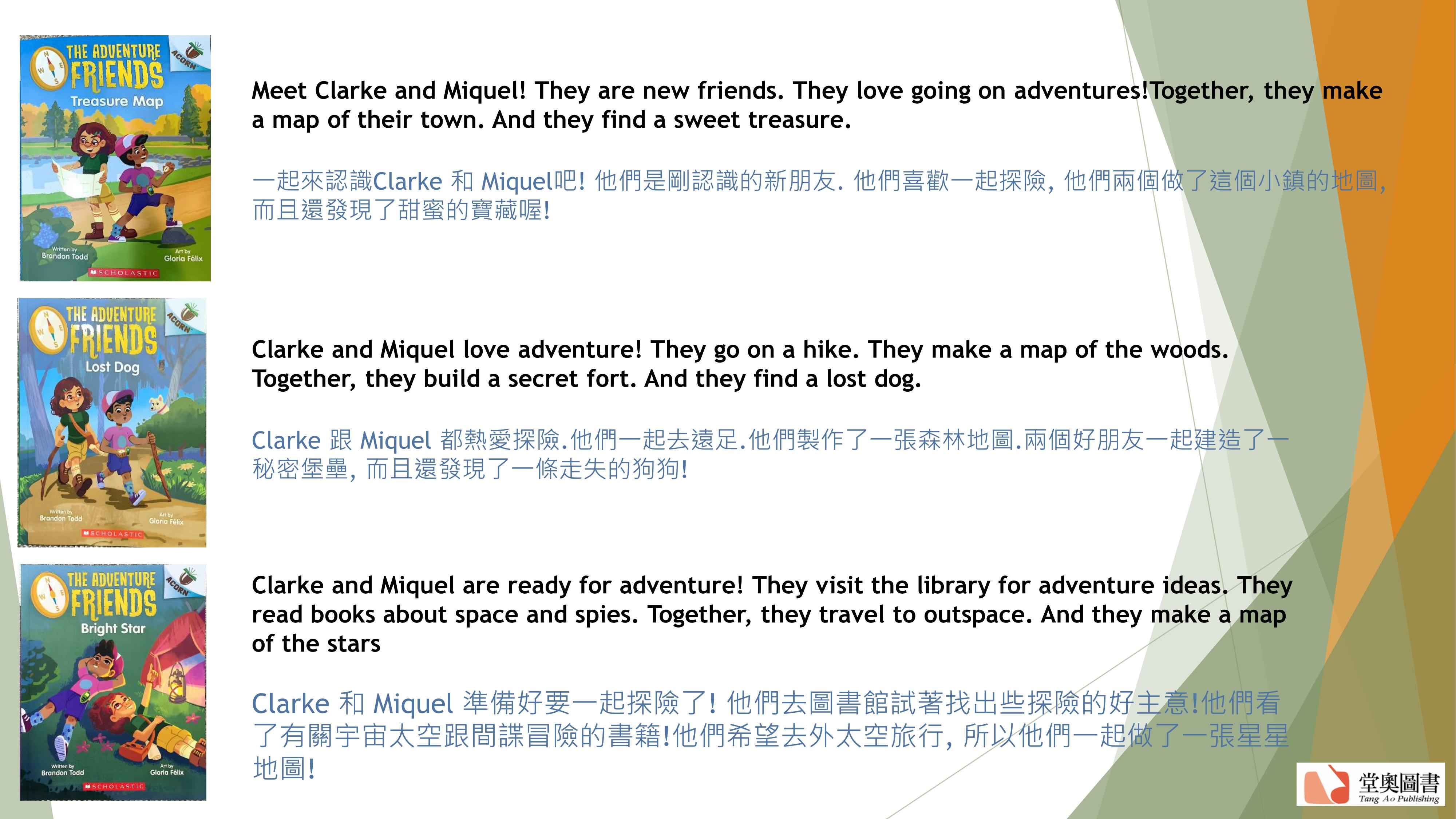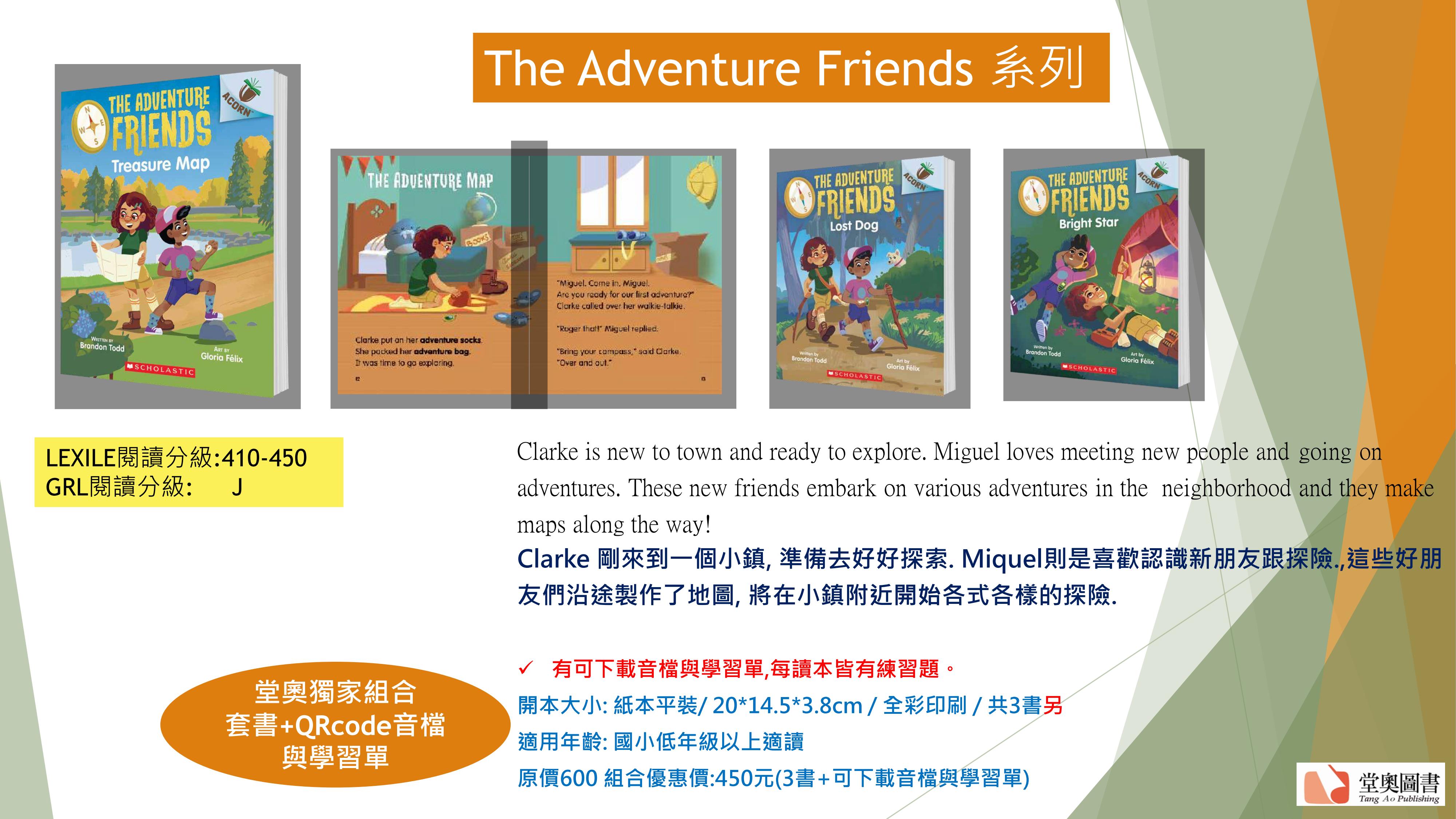 作者:Author: Brandon Todd; Illustrator: Gloria Félix 出版:Scholastic Asia 頁數:44/每冊 尺寸:140mm x 179mm(讀本) 規格:彩色/平裝 級數:Lexile分級 410~450L 適用程度:幼兒園 (4~6歲)