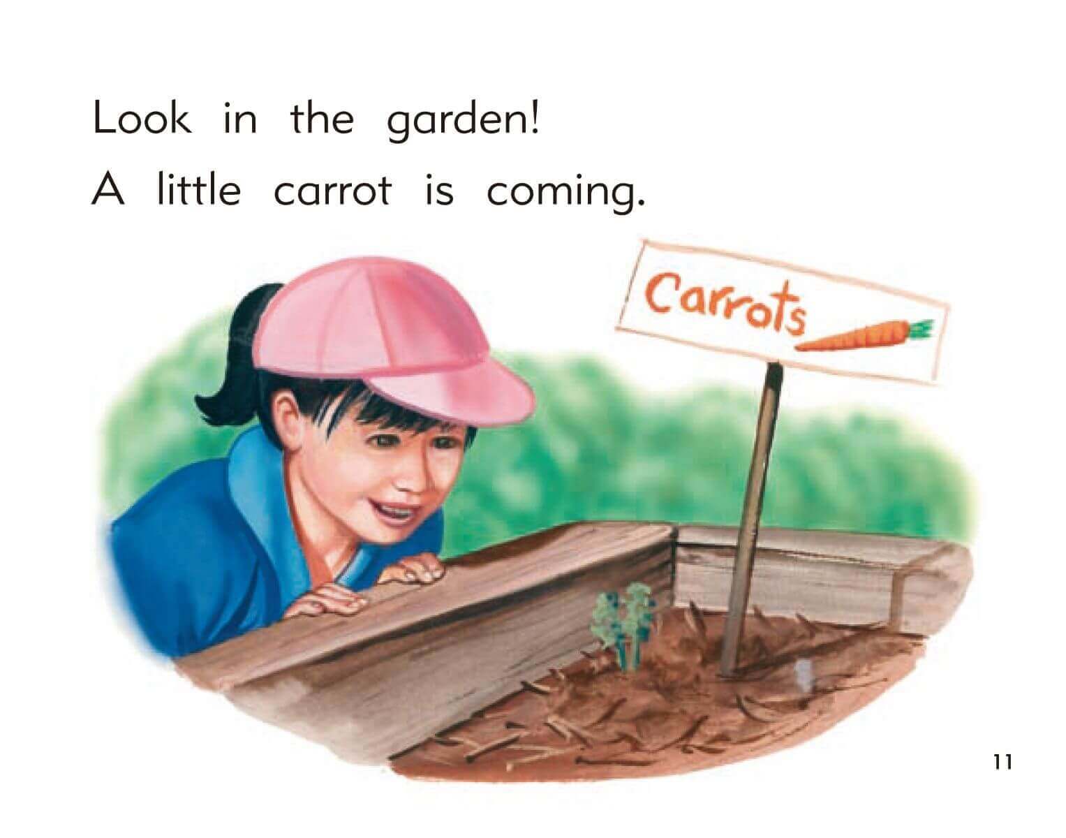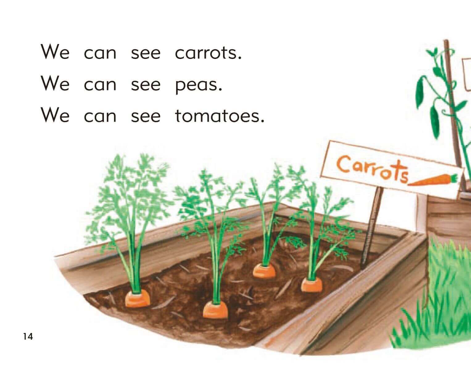 Carrots are in the garden. Peas and tomatoes are in the garden, too. Connect to the fiction text pair, The Big Mud Puddle.