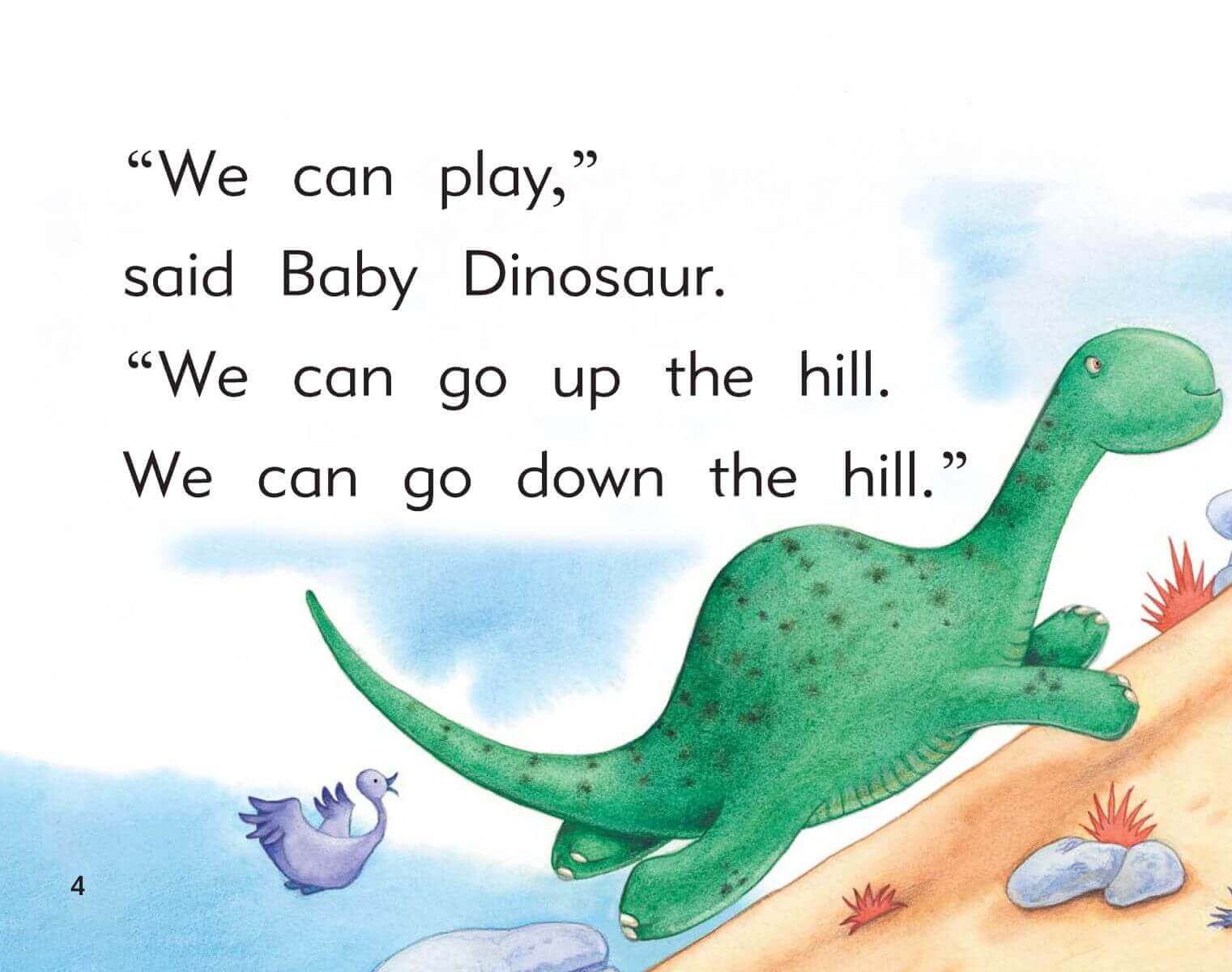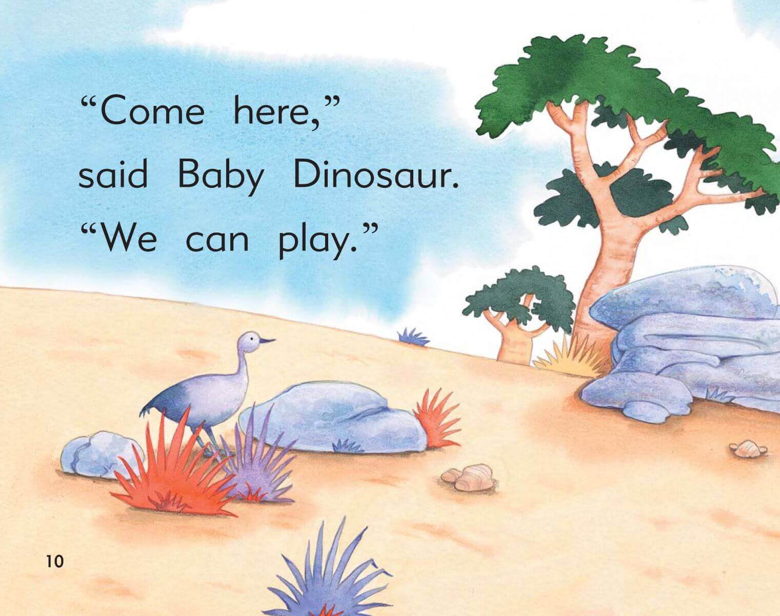 Baby Dinosaur can play. The little dinosaur can play, too. Connect to the nonfiction text pair, My Dinosaurs.