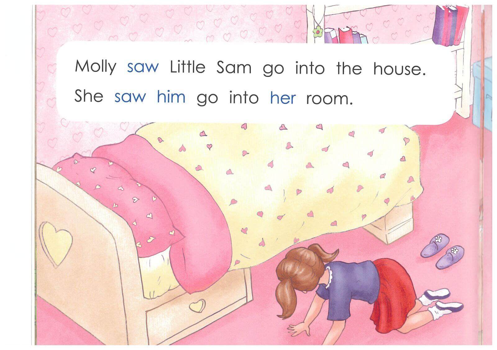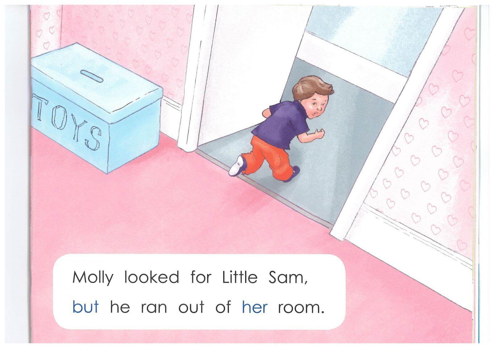 Molly is looking for her teddy. Where is it? And where is Little Sam?
