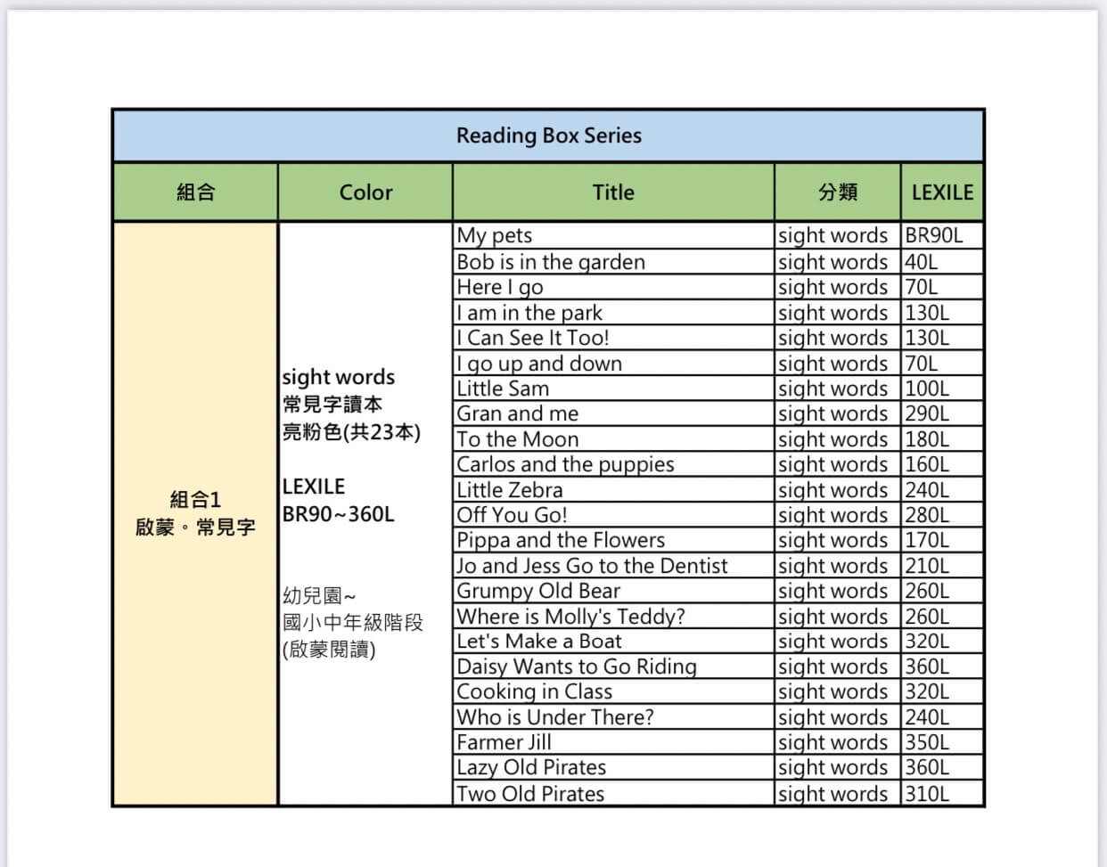 SC Reading Box 組合1( Sight Words+紅紫色共39本)+贈2本學習單