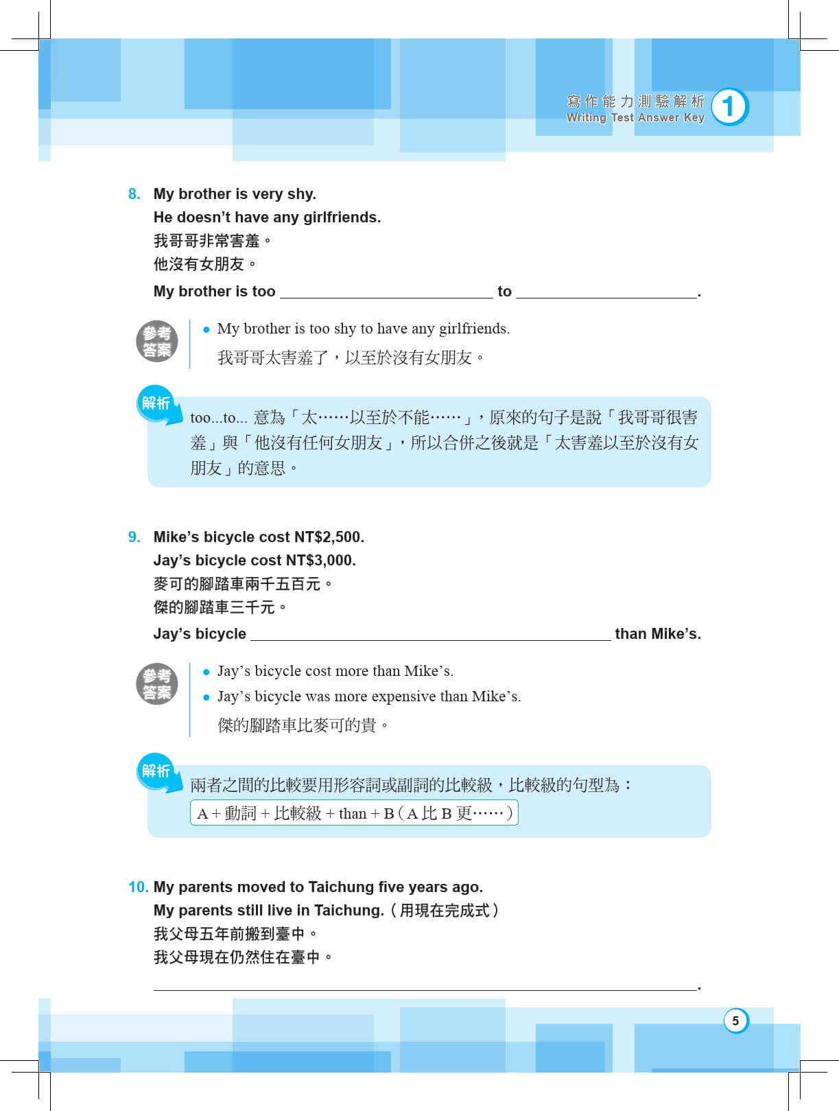 作者簡介: 張麗玉 *學歷: 英國華威大學(University of Warwick)博士、主修戲劇教育與英語教學、英國華威大學戲劇教育特殊榮譽碩士、淡江大學西洋語文研究所英語教學碩士、淡江大學英文系學士 *經歷: 現任國立臺南大學戲劇創作與應用學系專任副教授、華威大學戲劇教育碩士課程助教、淡江大學英文系講師、真理大學外文系講師、國小英語種子教師師訓講師、Pearson Education Taiwan師訓講師、語言學習叢書作者、《台北縣國小英語課程綱要及能力指標》編輯顧問 *著作: 《朗文全民英檢初級聽力測驗》、《朗文全民英檢初級閱讀測驗》、《朗文全民英檢初級寫作測驗》、《朗文全民英檢初級口說測驗》、《朗文全民英檢初級菁英挑戰版—聽力&閱讀(初試)》、《朗文全民英檢初級聽說讀寫全測驗(精選版)》、《朗文捷進英檢字彙—每週讀書計畫【初級】(新版)》、〈簡單就是美的說故事劇場〉,《美育雙月刊192期》(2013)、《遊「戲」童年:扮戲×看戲×陪孩子玩出潛實力(大好書屋)》 顧叔剛 *學歷: 英國華威大學(University of Warwick)翻譯研究碩士、淡江大學美國研究所國際關係碩士、淡江大學英文系學士 *經歷: 曼哈頓國際語文中心多益測驗講師、曼哈頓國際語文中心商英寫作、文法閱讀講師、淡江大學英文系講師、聖約翰科技大學講師、淡江大學成人教育學院英語課程設計、佳音英語石牌分校協辦人、進階兒童美語講師、從事英語教學、翻譯、課程規劃十餘年 *著作: 《朗文全民英檢初級聽力測驗》、《朗文全民英檢初級閱讀測驗》、《朗文全民英檢初級寫作測驗》、《朗文全民英檢初級口說測驗》、《朗文全民英檢初級菁英挑戰版—聽力&閱讀(初試)》、《朗文全民英檢中級菁英挑戰版—寫作&口說(複試)》、《朗文全民英檢初級聽說讀寫全測驗(精選版)》、《朗文捷進英檢字彙—每週讀書計畫【初級】(新版)》、《讀金融時報學英文精選集1》、《讀金融時報學英文精選集2》、《讀金融時報學英文精選集3》 |